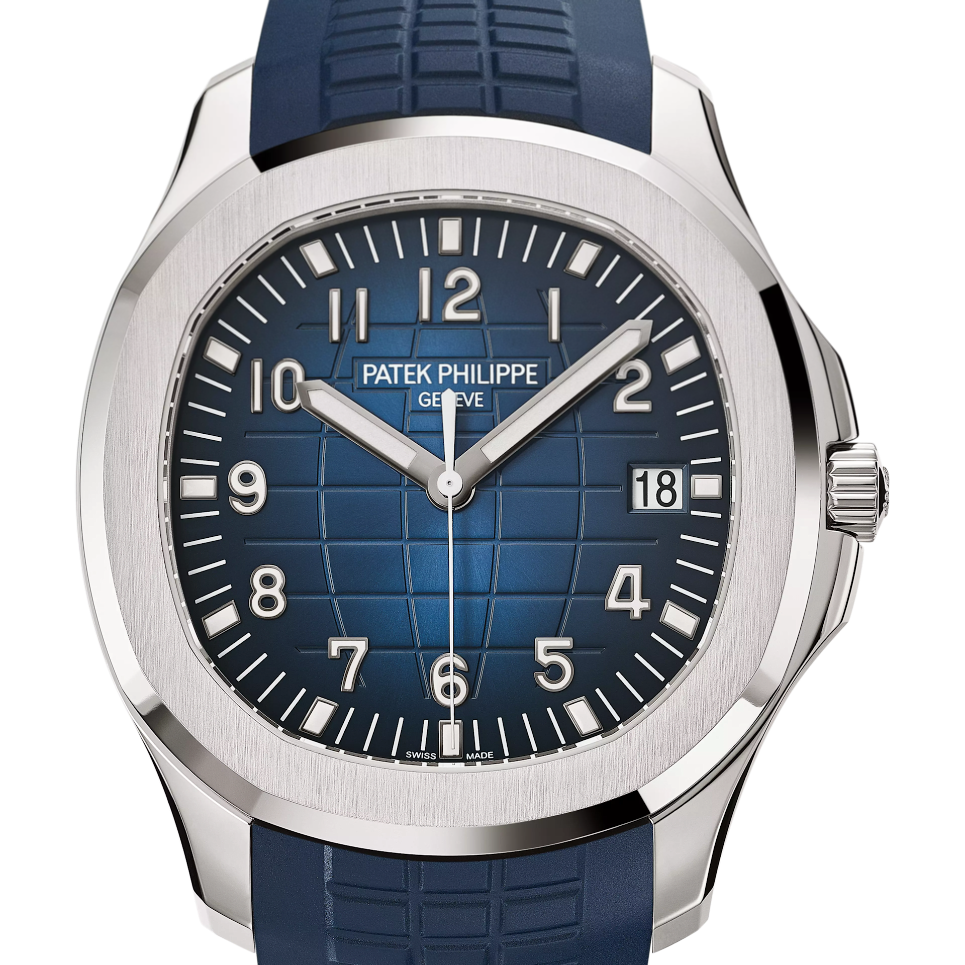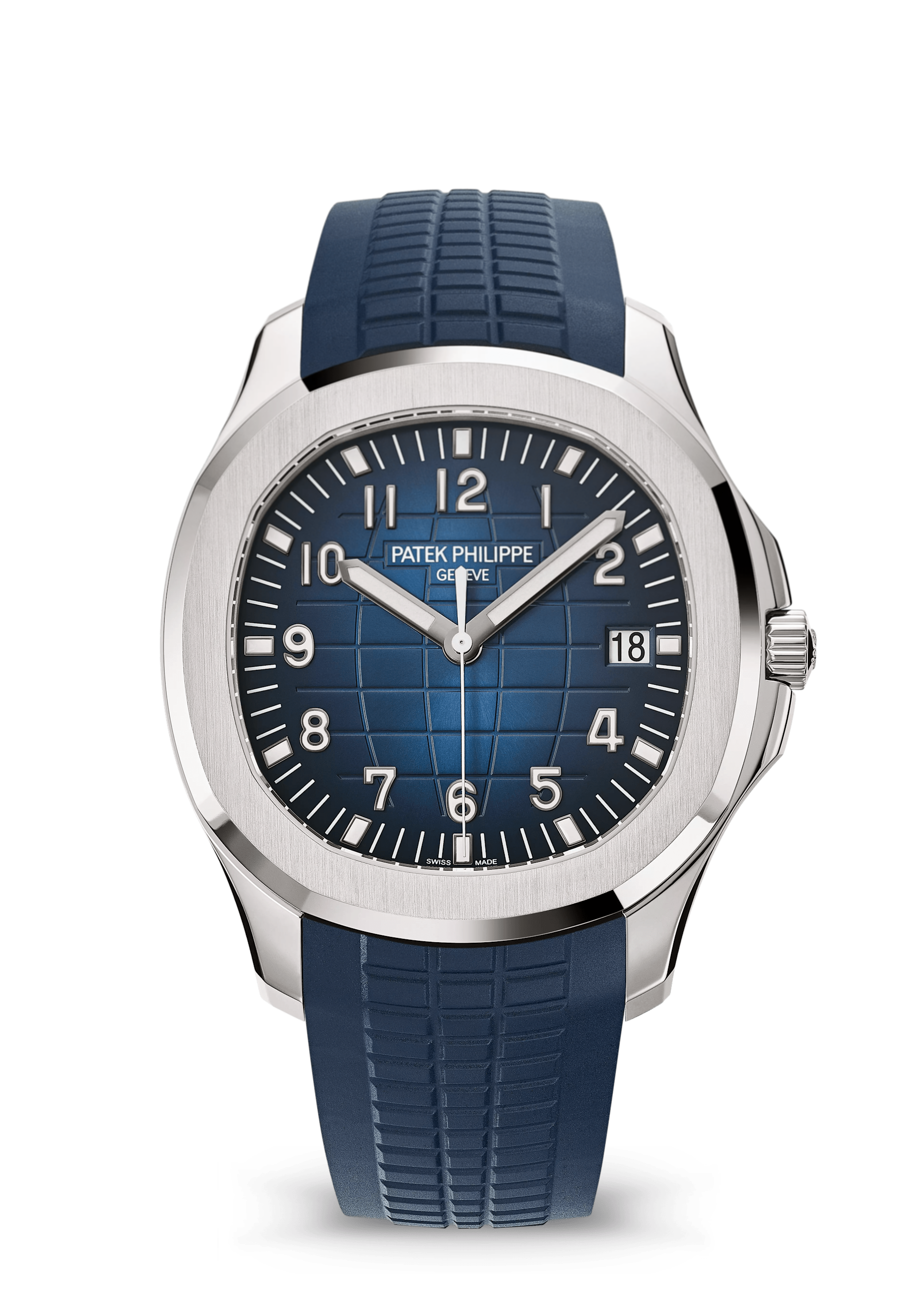 Com 42,2 mm de diâmetro, este Aquanaut automático combina uma caixa em ouro branco com um mostrador em relevo com um sutil gradiente que vai do preto ao azul-escuro. Os mostradores são extremamente legíveis tanto de dia quanto de noite, com ponteiros luminescentes em ouro branco e algarismos arábicos aplicados.